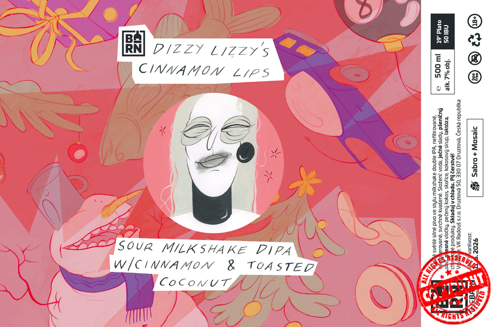 Dizzy Lizzy vyrazila s partou na vánoční večírek, kde to správně žilo a pivo teklo proudem. A protože je to mlsná holka, která má nejradši piva plná výrazných chutí, vzbudila se ráno se rty celými od skořice, kterou jsme ozvláštnili toto extravagantní pivo. Vánoční mashup našeho originálního core piva, do kterého jsme navíc přidali slušnou porci skořice.