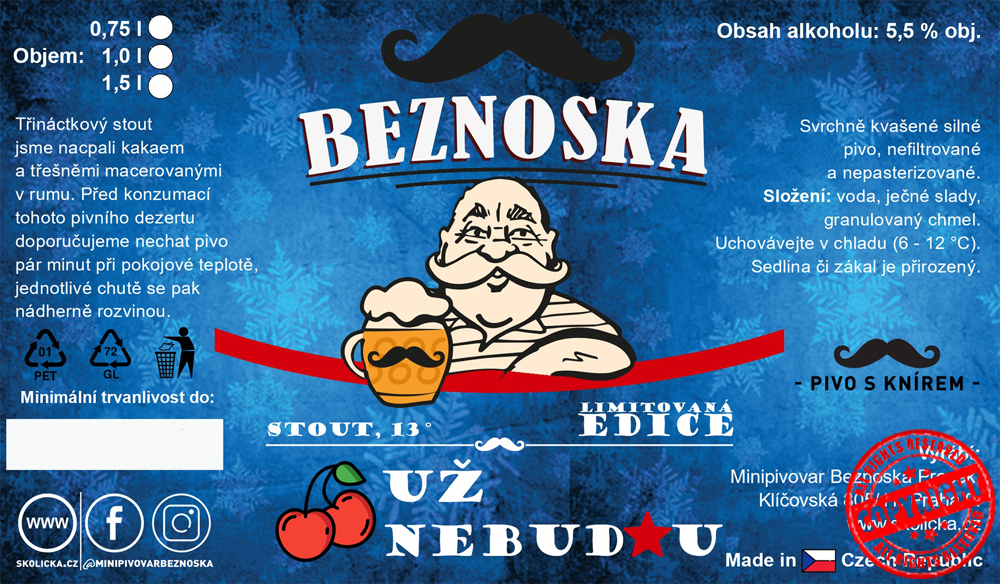 Silnější, plnější a hořčí varianta našeho oblíbeného ležáku Beznoska, který přes dva měsíce zrál v našem sklepě.