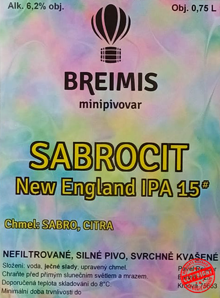 Složení:voda, ječné a pšeničné slady, ovesné vločky, upravený chmel (El Dorado, Citra)