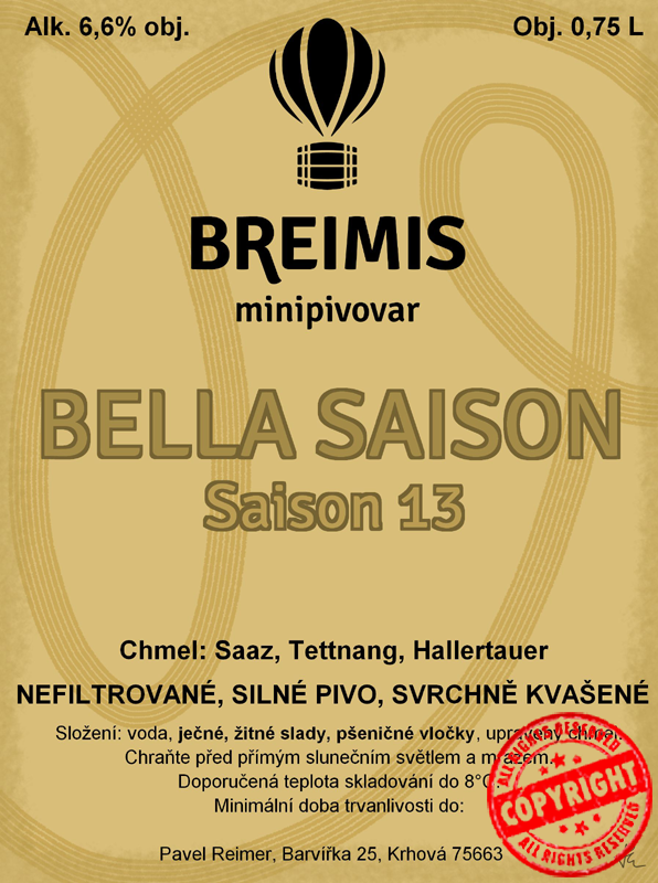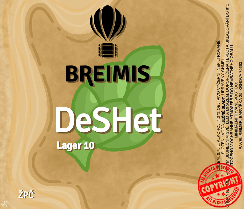 DeSHet a zákonným názvem výčepní pivo. Měl jsem na zkoušku plzeňský slad od sousedů ze slovenského Zvolenu. A jsem překvapený intenzivnějším sladovým aroma. Přidal jsem kapku Best A-Xl, který to ještě podpořil a chmelil jen na SH ŽPČ na střední hořkost.