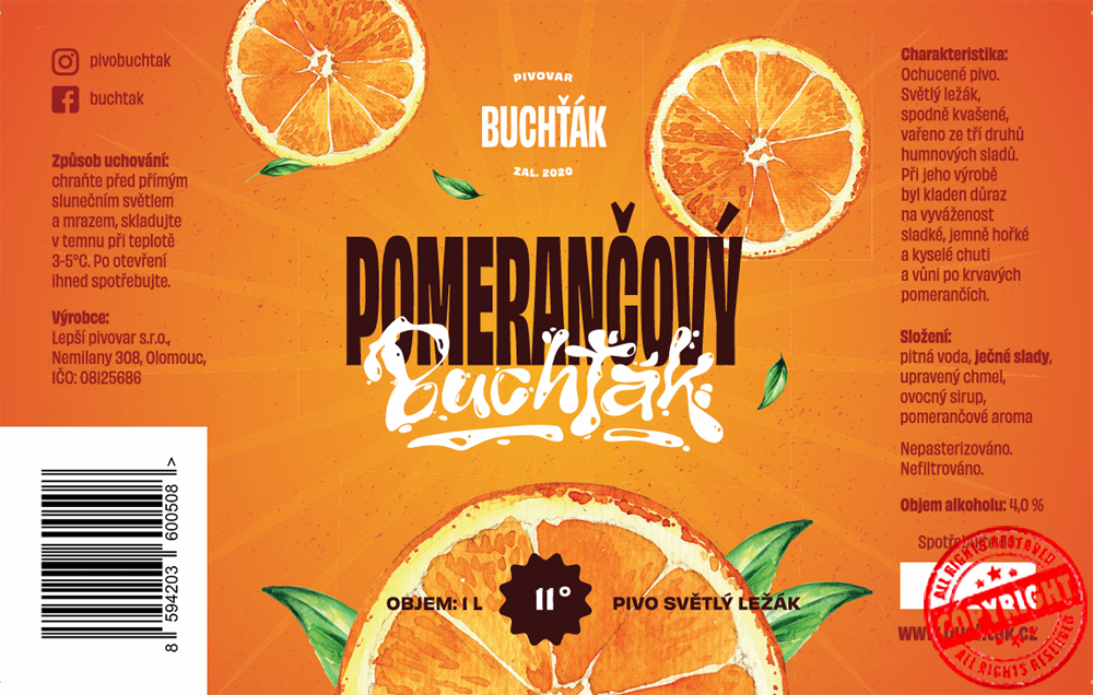 Ochucené pivo, světlý ležák, spodně kvašené, vařeno ze dvou druhů humnových sladů. Při jeho výrobě byl kladen důraz na vyváženost sladké, jemné hořké a kyslé chuti a vůni po krvavých pomerančích.