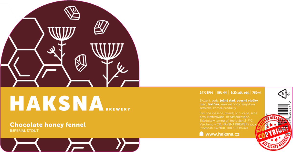 Složení:voda, ječný slad, ovesné vločky, med, kakaové boby, fenyklová semínka, chmelové produkty
