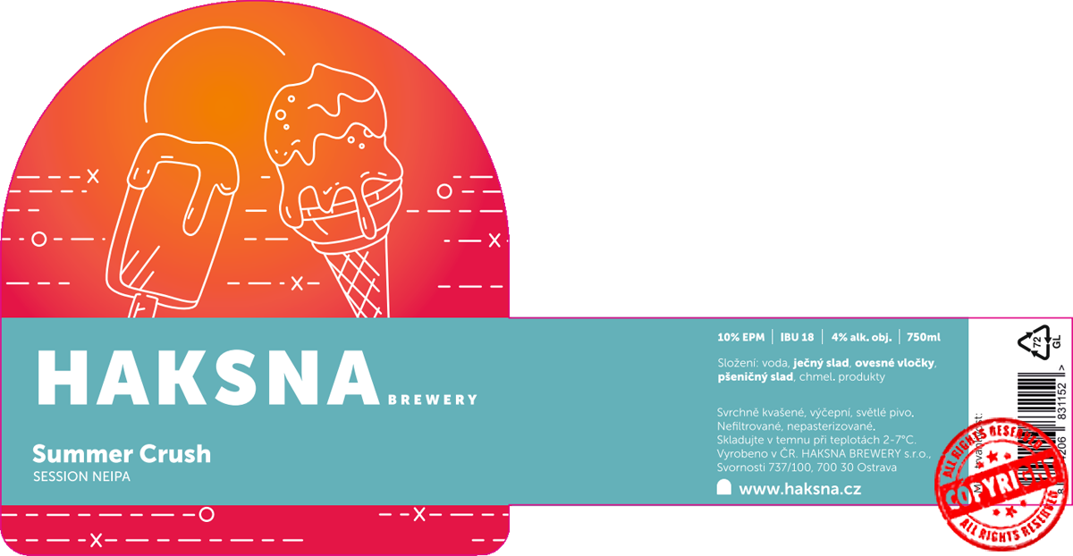 Pivo Summer Crush, 10% session NEIPA s chmely Citra, Strata Cryo a BRU-1. Toto osvěžující pivo je ideální na horké letní dny, díky svému jemnému profilu a nízké hořkosti, kterou poskytují pečlivě vybrané chmely.Pivo Summer Crush je kvašeno speciálními kvasnicemi London Fog, které jsou známé svými biotransformačními schopnostmi a schopností zvýraznit ovocné estery. Tyto kvasnice dodávají pivu jemné tóny tropického ovoce a citrusů, což dokonale doplňuje chmelový profil. Díky London Fog je výsledné pivo nejen chuťově bohaté, ale také krásně zakalené.