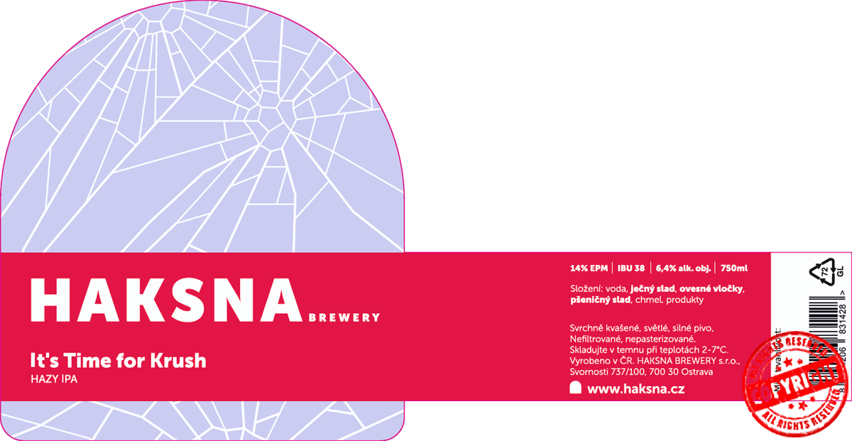 V pivovaru HAKSNA se nám zahnízdila podmanivá West Coast IPA 15° (India Pale Ale), tedy luxusně chmelená, hodně voňavá dáma s americkými chmely Citra, Simcoe a Mosaic. Můžete se tak těšit na lehké aroma citrusů, exotického ovoce, nádechu bylinek i manga. Toto svrchně kvašené pivo je i přes sílu vůní krásně osvěžující a milují jej muži i ženy. Spojení dominantní hořkosti a vyššího obsahu alkoholu je jako stvořené pro dlouhé letní večery. Prostě takový divoký západ na východě Česka. Na zdraví