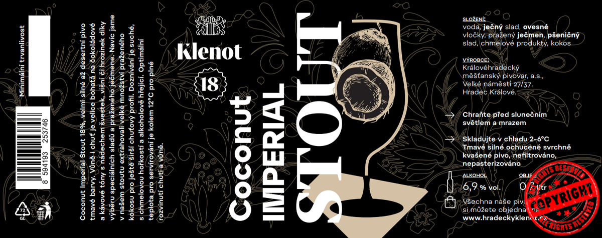 Russian imperial stout, silné a velmi tmavé svrchně kvašené pivo původem z Anglie s hutnou, plnou chutí díky široké paletě sladu. Pivo má zároveň vyšší horkost, která ale není příliš výrazná a doplňuje celkový charakter. Optimální teplota pro servírování je kolem 12°C, kdy se plně rozvine aroma. V chuti a vůni je znát také vyšší obsah alkoholu. Chuť a vůně je doplněna praženým kokosem, jehož aroma se s původní recepturou stoutu velmi příjemně snoubí.