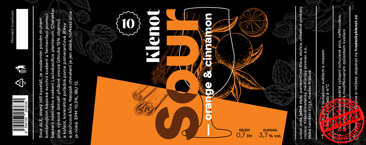Sour ALE, zvaný též kyseláč, je moderním pivním druhem kombinujícím svrchní kvašení a fermentaci pomocí bakterií mléčného kvašení Lactobacillus plantarum. Významným doplňkem pak je přídavek ovoce (asi 6% celkového objemu), v našem případě třešně a vanilka. Chmelení je naopak minimální, pivo je jen slabě hořké.