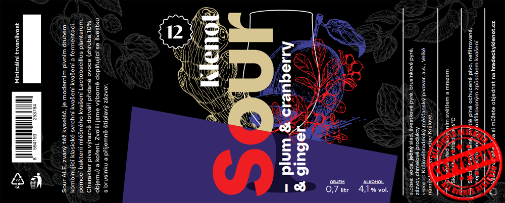 Sour ALE, zvaný též kyseláč, je moderním pivním druhem kombinujícím svrchní kvašení a fermentaci pomocí bakterií mléčného kvašení Lactobacillus plantarum. Významným doplňkem pak je přídavek ovoce, tentokrát jsme zvolili švestky a navíc špetku chilli. Chmelení je naopak minimální, pivo je jen slabě hořké.