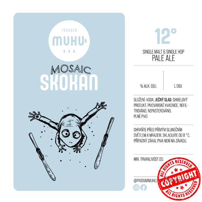 Složení:voda, ječné slady (Pale Ale), chmelové produkty (Mosaic), pivovarské kvasnice