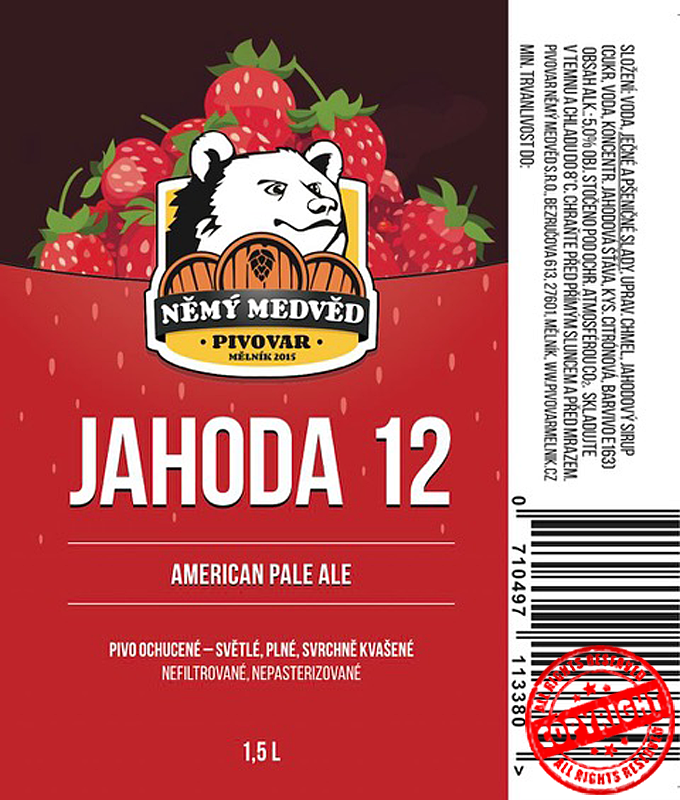 Složení:voda, ječné a pšeničné slady, chmelové produkty, jahodový sirup