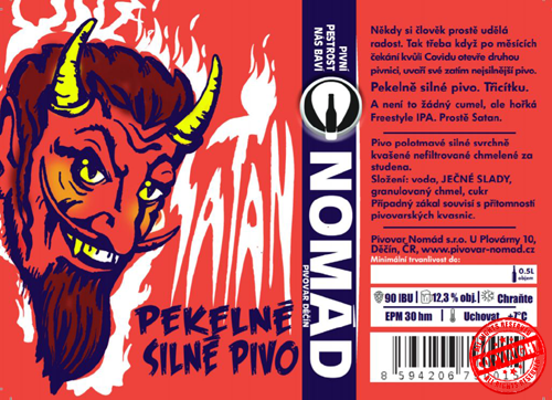 Svrchňák, a i když má skoro 13% procent alkoholu a vyšší zbytkový extrakt, žádný cumel to není. Hořkosti posbíral také dost, chmelem jsme nešetřili a tudíž jsme se dostali k téměř trojmístné hodnotě IBU, tedy mezinárodních jednotek hořkosti. Navíc je chmelený za studena, takže se dostane i na chmelové tóny ve vůni. A cukr uvedený na etiketě? Ten dobře prokvašuje a dodává našemu Satanovi na likérovosti.