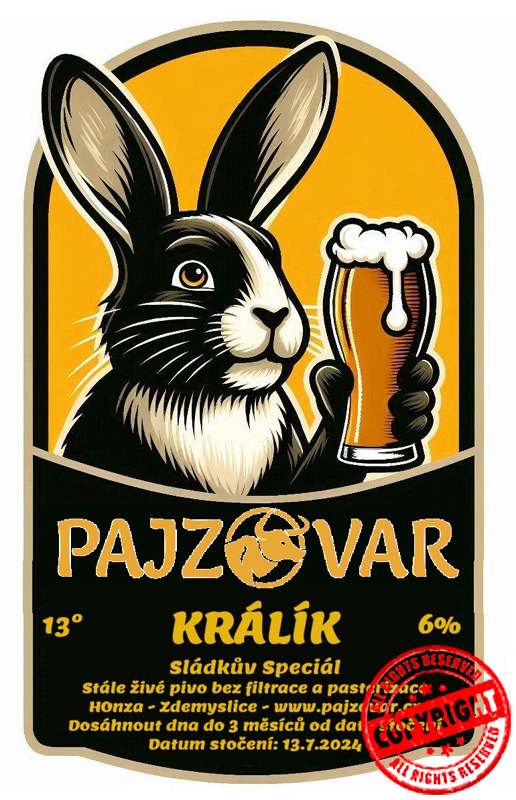 Králík je naším prvním pivem dle vlastního receptu. Použitím výtečného belgického aromatického sladu a sladu pro zlepšení a zakulacení chuti piva. Chmeleno vícero chmely, chmelem s květinovo/kořeněným aroma a chmelem původem z USA. Celkovým složením jsme dosáhli krásně plného těla, zajímavého aroma s nádechem nugátu, osvěžující chuti limetky a příjemně hořkého závěru. Je to pivo první volby, buď si jej ihned oblíbíte, nebo se k němu propijete. Vaříme jako 12° až 13° se stupněm alkoholu mezi 5% až 6%. Slovo degustéra: Králík je dobrý, zpočátku se tváří sladce a pak hned najede parádní hořkost, takže pitelnost je vynikající. Problém s tzv travní pachutí téměř neznatelný.