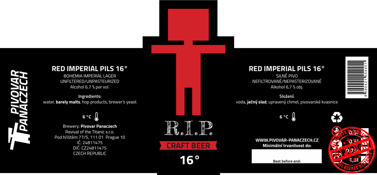 Red Imperial Pils, silné polotmavé spodně kvašené pivo s atributy svrchně kvašeného piva typu RED IPA uvařené z pěti druhů sladu (Plzeňský, Pale Ale, Mnichovský, dva karamelové slady), chmelené odrůdami Kazbek a Mosaic. Vyznačuje se načervenalou barvou, plnou chutí a zákeřnou pitelností.