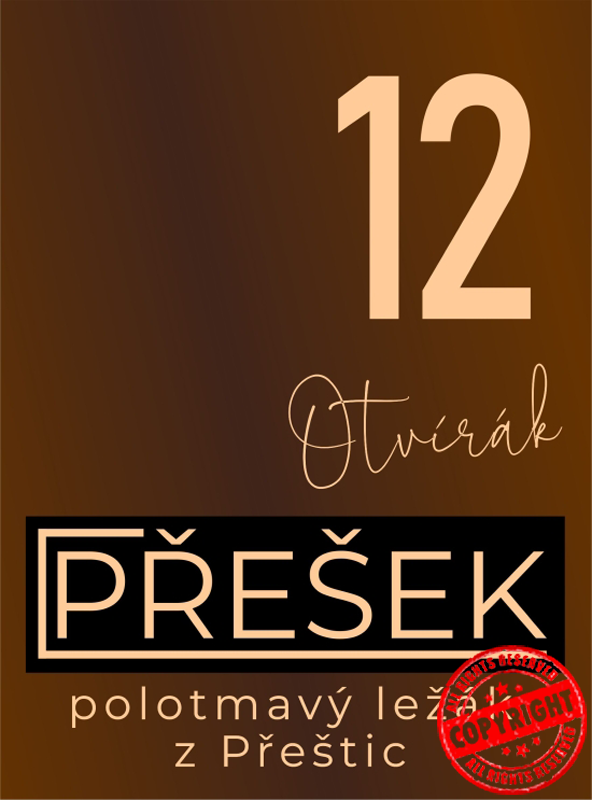 Prémiový polotmavý ležák, to je elegance, výjimečnost, samet. Pivo pro zvláštní příležitosti, ale nejen pro ně. Vyladěná kombinace šesti druhů sladů zaručuje lehce sladové tělo a neskutečnou pitelnost. Díky chmelu si ale přesto zachovává hořkost, která k ležáku prostě patří. Pivo se připravilo ku příležitosti otevření nového Přeška.