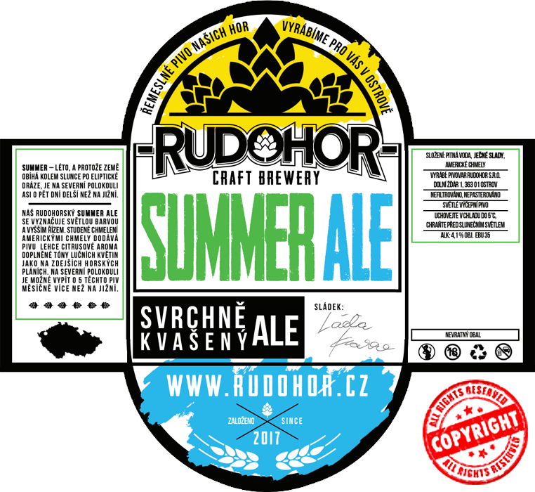 Rudohorský Summer Ale se vyznačuje krásně sytě žlutou až lehce zlatavou barvou zejména díky použití bavorského a pale ale sladu. Americké odrůdy chmele dodávají tomuto pivu střední hořkost a díky využití studeného chmelení se Summer Ale vyznačuje příjemným chmelovým a citrusovým aroma.