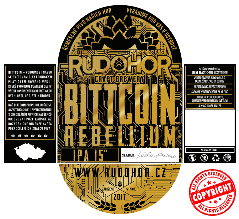 Rudohorský Bittcoin Rebellium je vytříbený India Pale Ale, do kterého jsme vybrali jedinečné druhy chmelů z každého kontinentu. Nejen Asijský Sorachi Ace a také pak African Queen dodávají tomuto pivu navýsost jedinečné vlastnosti, kdy po přivonění očekávejte aroma mořské paluby staré indické galéry, při prvním doteku jazykem náznak sladkosti avšak poměrně rychlý nástup velmi jemné, ale intenzivní hořkosti. Podobnost s kybernetickou měnou BITCOIN, která propojuje kontinenty je čistě náhodná. Náš BITTCOIN Rebellium propojuje hořkost a senzoriku chmelů z pěti kontinentů s odhodláním pivních nadšenců objevovat požitkářské až rozkošnické dimenze světa pokročilejších znalců piva.