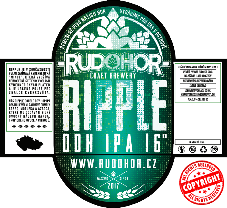 Naše rudohorská Ripple DDH 16° IPA se díky dvojitému studenému chmelení (DDH – Double Dry Hopping) vyjímá velmi bohatým a silně ovocným aroma s nádechem manga, tropického ovoce a citrusů. Tento již poměrně silný India Pale Ale je vařen z ječných a pšeničných sladů.