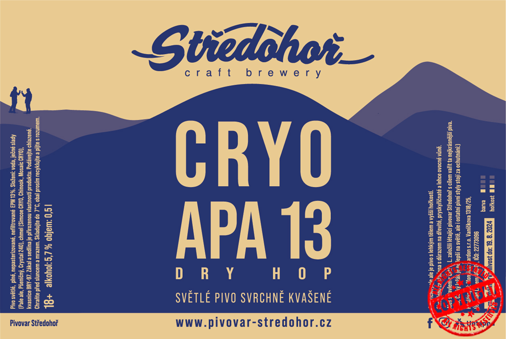 Po velkém úspěchu minulé 13 Cryo APA se studeným chmelením, mrazem sušeným Simcoe a Mosaic (2g/l), jsme recept odlehčili na 12 EPM. Vše ostatní zůstává: vyšší hořkost, jantarová barva, vůně borovic a tropického ovoce.
