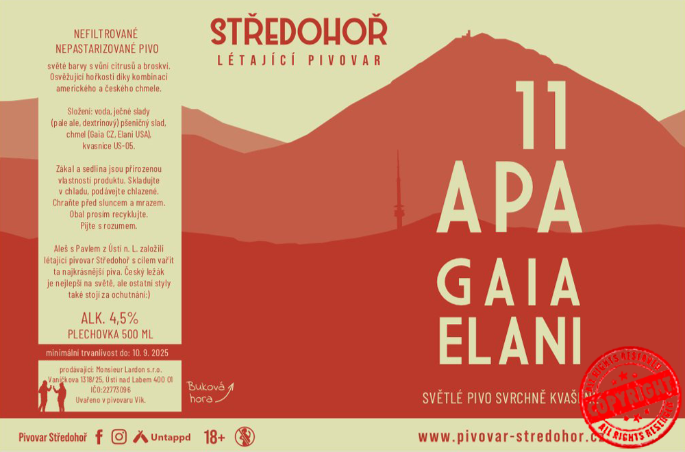 American Pale Ale 11 pojmenované po novém českém chmelu Gaia a novém americkém chmelu Elani. Je hořká a voňavá tak akorát, vhodná na celovečerní popíjení. Chmelem se nešetřilo s proběhlo i studené chmelení.