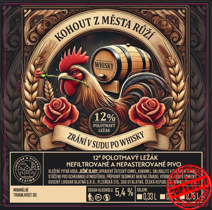 Složení:pitná voda, ječné slady, upravený chmel (ŽPČ, Sládek, Premiant)