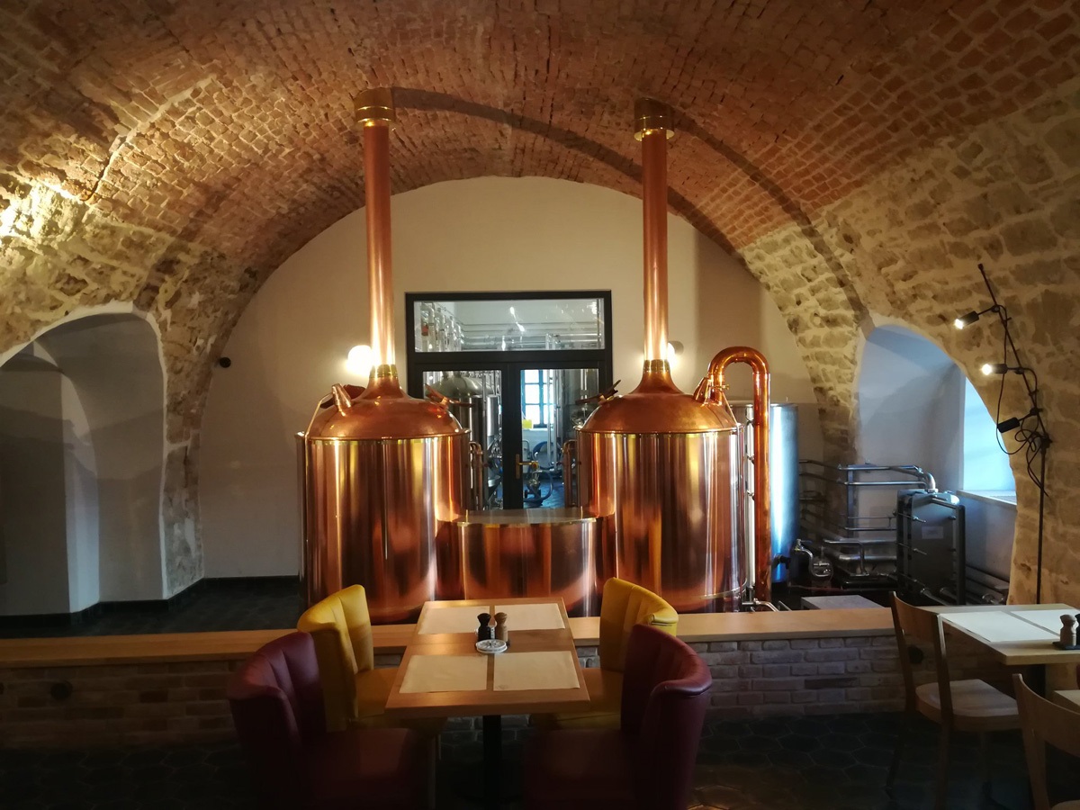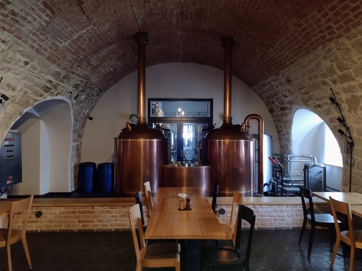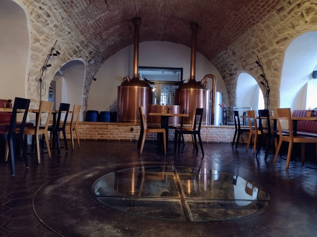 Prostor restaurace se skládá ze tří částí s odlišnou atmosférou. Hlavní sál je koncipován jako pivnice, kde u sousedských stolů může posedět velká skupina přátel nebo si jednotlivci a menší skupinky přisedávají k sobě. Plynule se přechází do místnosti s varnami, ta večer nabízí klidnější atmosféru a přes den se přímo zde vaří pivo. Uprostřed místnosti je pod skleněným poklopem odhalena původní studna. Ležácký sklad na prostor varen navazuje a je propojen s restaurací proskleným průhledem. Další ležácké tanky jsou umístěny v chodbě spojující výčep a varny. Pivo na čep putuje přímo z těchto tanků. Třetím charakterem posezení, který restaurace nabízí, je salónek vhodný pro uzavřenou společnost.