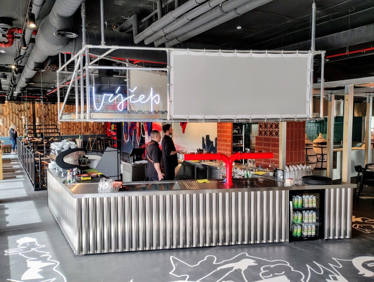Restaurace tak doplnila například protější dvoupatrovou pizzerii L’Osteria, espresso bar Loka či rodinné cukrářství Ollies, které v objektu otevřely již dříve.