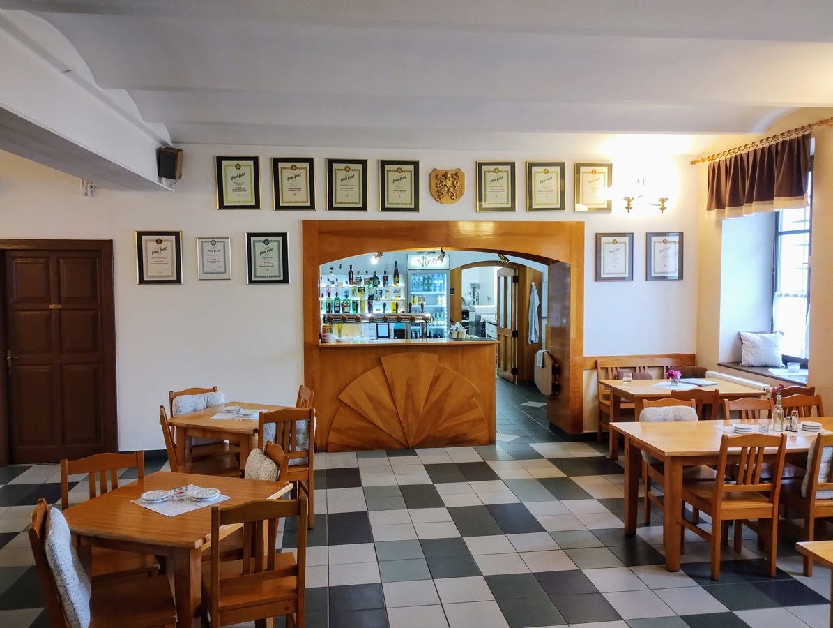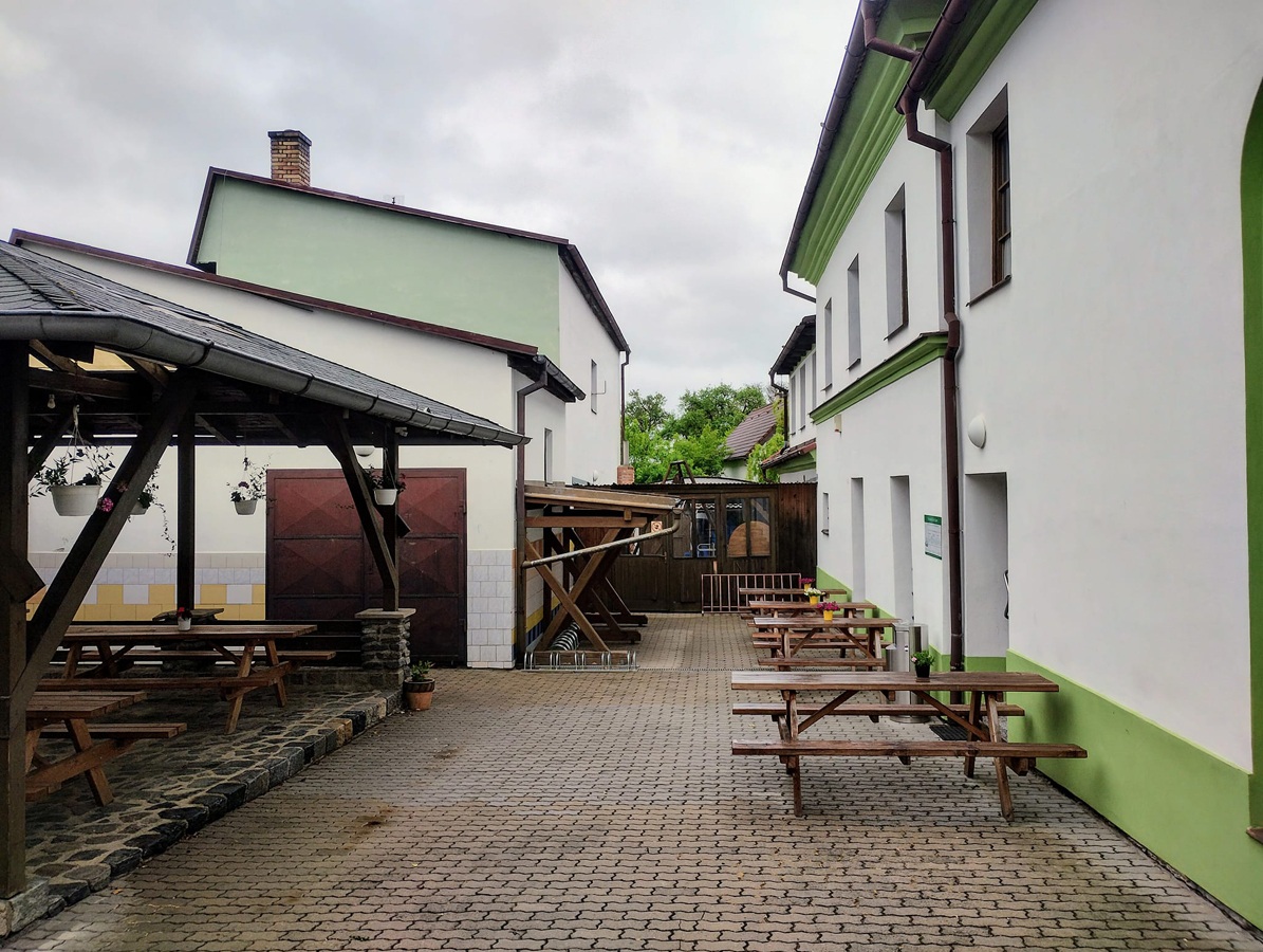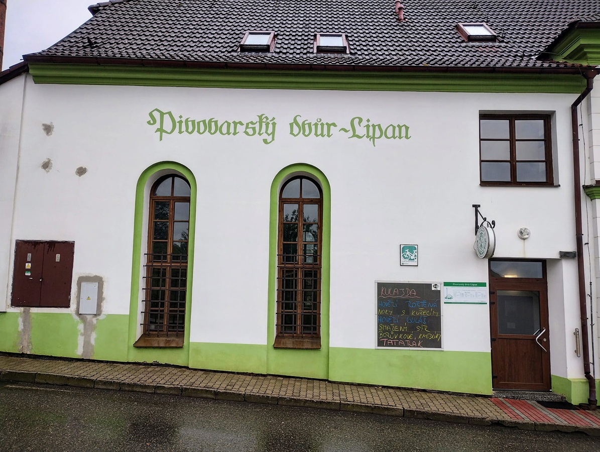Příjemné posezení pod pergolou v parném létě přijde vhod pěším i cykloturistům, kterých sem hlavně v sezoně zavítá dost. Na čepu byla v době naší návštěvy čtveřice piv − světlý a tmavý ležák, světlé výčepní a jedenáctistupňové APA. Všechna z místního pivovárku, tedy značky Lipan. Půllitr ležáku stojí 35 korun.