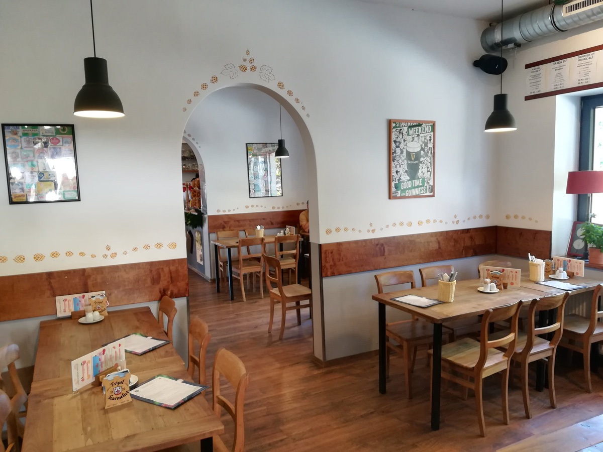 Pivovar je sice trochu zašitý, ale dá se tam dostat za pár minut busem např. z Želivárny nebo ze Skalky. Trochu mě mrzí, že už jsem letos nestihla zahrádku, která na fotkách vypadala lákavě, nicméně i vnitřek je velmi příjemný. Podnik je rozdělený na několik částí, což jsem ocenila, jelikož si díky tomu člověk může v danou chvíli vybrat klidnější nebo naopak živější místnost a oddělit se od nežádoucích vedlestolujících (např. hlučná rodinka). A nekuřácké prostředí už je naštěstí pro slušnější pivovarské restaurace samozřejmostí.