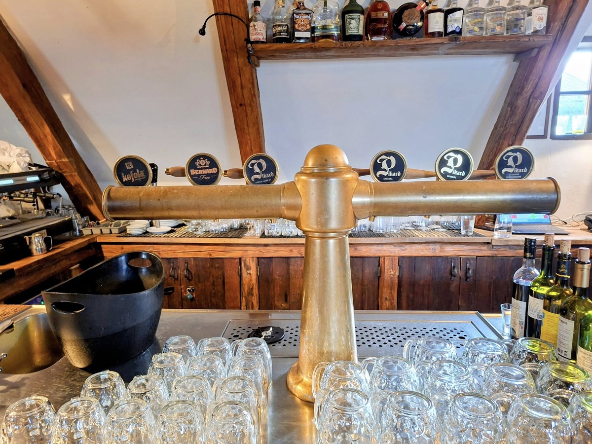 Jaký je PIKARD®? Vaříme jej klasickým postupem - nepoužíváme žádné extrakty a urychlovací procesy a dbáme na prvotřídní suroviny, proto jsme mu vybrali nejkvalitnější žatecký chmel "červeňák". pivo je hořké, ne však drsné, v jeho vůni je cítit jen chmel a slad. technologii dodalo PIVO PRAHA, s.r.o. jako svůj šestý minipivovar v zemi (roční výstav 1000hl) - dvounádobová měděná varna s objemem vyrážené mladiny 5,5hl je součástí interiéru pivovarské hospody. s varnou sousedí šrotovna a sklad, pro zbytek výroby bylo obnoveno křídlo, kde je umístěn deskový chladič, nádoba na horkou vodu, spilka se třemi kvasnými káděmi a tanky - pěti ležáckými a dvěma výčepními. díky rekonstrukci nádvoří bylo možno vést pivo na výčepy přímo pod dlažbou.